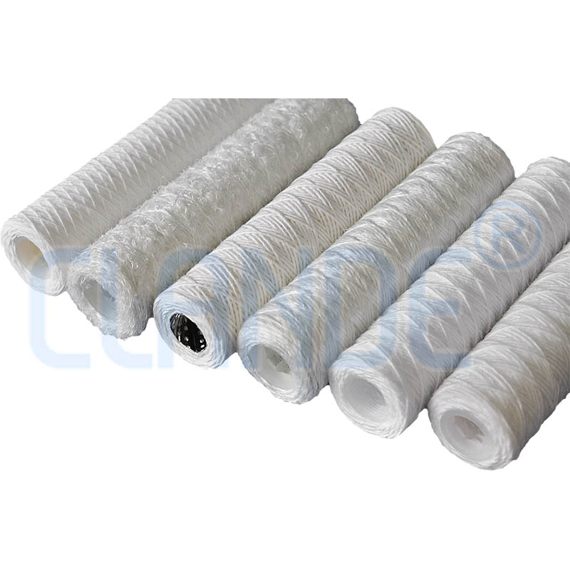 線繞濾芯是由紡織纖維線以特定的工藝?yán)p繞在多孔骨架上精制而成。其材料有丙綸纖維、晴綸纖維、脫脂棉纖維等。控制濾層纏繞松緊及濾孔的大小程度可制成不同過濾精度的濾芯。