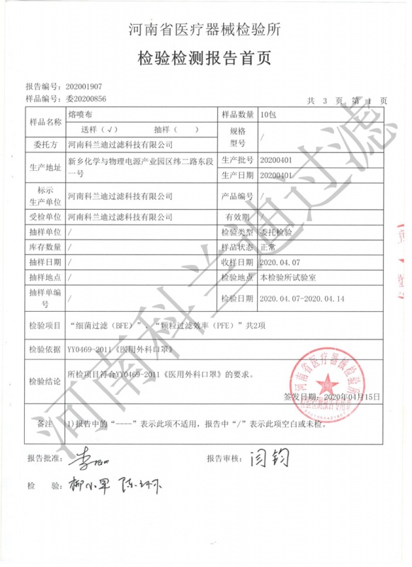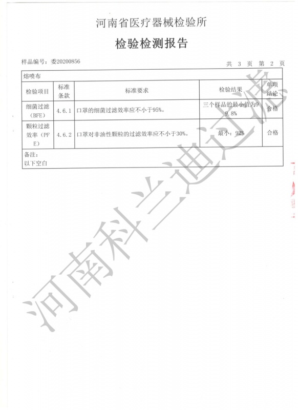 熔噴布檢測報(bào)告