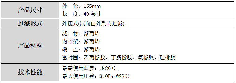 Clande?CHF-PS系列替代福斯菲爾大流量濾芯精選優(yōu)異聚丙烯纖維作為過濾材料,單向開口設(shè)計過濾介質(zhì)由外到內(nèi)外壓式過濾;濾芯大直徑折疊工藝制作增加了濾芯的過濾面積,提高了流通量從而減少過濾器使用濾芯的數(shù)量,節(jié)約投資成本。