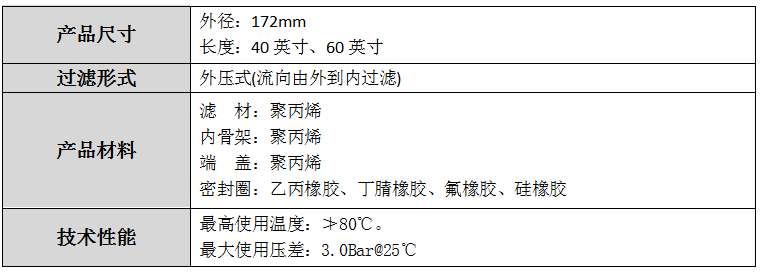 Clande?CHF-PT系列大流量濾芯精選優(yōu)異聚丙烯纖維作為過濾材料,單向開口設(shè)計過濾介質(zhì)由外到內(nèi)外壓式過濾;濾芯大直徑折疊工藝制作增加了濾芯的過濾面積,提高了流通量從而減少過濾器使用濾芯的數(shù)量,節(jié)約投資成本。