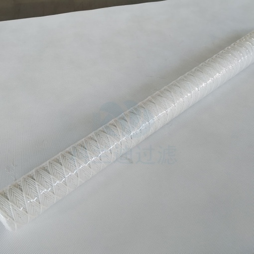脫脂棉線繞濾芯是由紡織纖維粗紗制成,根據(jù)特定的工藝,有規(guī)則的纏繞在不銹鋼骨架表面,構(gòu)成內(nèi)外致密的蜂窩結(jié)構(gòu)。通過(guò)控制纏繞過(guò)程中的繞組密度和形狀(圖案),制備出不同過(guò)濾精度的濾芯,具有很好的過(guò)濾性能。針對(duì)以往線繞濾芯流阻大、使用壽命短等缺點(diǎn),采用先進(jìn)的線繞技術(shù)來(lái)延長(zhǎng)使用壽命,從而減少了更換濾芯的次數(shù),降低了使用成本。